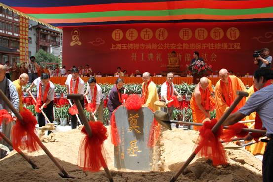 7月31日,由上海建工四建集团总承包的上海玉佛禅寺消除公共安全隐患保护性修缮工程开工典礼暨祈福法会隆重举行。工程位于上海市普陀区江宁路西侧,安远路南侧,由10栋新建木结构佛殿,2栋保留佛殿和3栋新建钢结构建筑等组成。工程总建筑面积6791平方米,预计2016年7月31日竣工交付。 作为沪上名刹、上海市级优秀历史建筑的玉佛禅寺,始建于1882年,至今已有120年的历史,由于建成年份远超砖木建筑的安全使用年限,并且寺内的消防通道、人流通道或缺失或设计不合理,玉佛禅寺每逢农历初一、十五以及重大节假日,都面临着严重的安全隐患。中国佛教协会副会长、上海市佛教协会会长、玉佛禅寺方丈觉醒法师介绍说,工程以“安全第一,保护优先”为原则进行设计和施工,修缮后的玉佛寺,将在保持原有历史风貌的基础上,合理布局、优化功能,消除公共安全隐患,营造神圣庄严而又和谐温馨的寺院氛围。觉醒法师和市老领导冯国勤共同为“玉佛禅寺觉群慈爱功德会紧急救助基金”揭牌。中国佛教协会会长传印长老专门为寺院修缮工程题词——“百年古刹,再启新篇”。 根据设计方案和市级优秀历史建筑的保护要求,修缮工作将保留天王殿、大雄宝殿两座建筑,天王殿原地不动,中间增设观音殿。大雄宝殿和观音殿之间距离为28.6米,比原来的15米增加了近一倍,殿前广场面积将从目前的约495平方米扩大到995平方米。拆除重建东西厢房和玉佛楼的部分,将把原来的佛协、素斋馆等场所都辟为可供公众活动的佛殿。修缮期间寺院对外开放和正常宗教活动将不受影响。 (刘敏 俞善进)