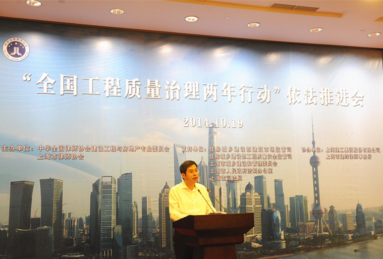 “全国工程质量治理两年行动”依法推进会在上海建工召开 上海建工集团总裁杭迎伟作主题演讲 10月19日,“全国工程质量治理两年行动”依法推进会在上海建工大厦隆重召开。会议由中华全国律师协会建设工程与房地产专业委员会和上海律师协会共同主办,由上海建工集团股份有限公司和上海市建纬律师事务所协办。住房和城乡建设部建筑市场监管司司长吴慧娟,上海市政府副秘书长黄融,上海市司法局局长郑善和,上海建工集团总裁杭迎伟,上海市律师协会会长盛雷鸣等领导、嘉宾,以及全国律协建房委委员、沪、浙、江三地律协建房委委员,高校专家、各地专业律师以及建筑企业代表等共约300人出席会议。 |