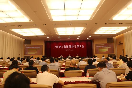 7月22日上午,上海建工集团召开领导干部大会。会议由集团党委书记、董事长徐征主持。集团党委副书记、总裁杭迎伟作《确保全面完成集团“十二五”规划目标任务 为顺利实现“十三五”良好开局奠定坚实基础》大会主题报告。会议要求集团全体职工统一思想、振奋精神、攻坚克难、真抓实干,确保全面完成集团“十二五”规划各项目标任务,为实现集团“十三五”良好开局和持续健康发展奠定坚实基础。徐征对做好下半年工作提出五点要求:第一、认清形势,继续保持奋发有为的精神状态;第二、坚持不懈,全面实现集团“十二五”规划的目标;第三、全面发力,积极推进集团的“全国化”战略;第四、问题导向,持续推进整改措施落到实处;第五,认真开展“三严三实”专题教育。杭迎伟对年内六个方面重点工作作出具体部署:第一、确保完成全年各项经济指标;第二、精耕细作各大重点目标市场;第三、圆满优质完成各项重大工程;第四、推进五大事业群的联动发展;第五、切实加强经济管控体系建设;第六、精心谋划“十三五”发展战略。集团党政领导、各企事业单位领导、集团各部门负责人近270人参加会议。