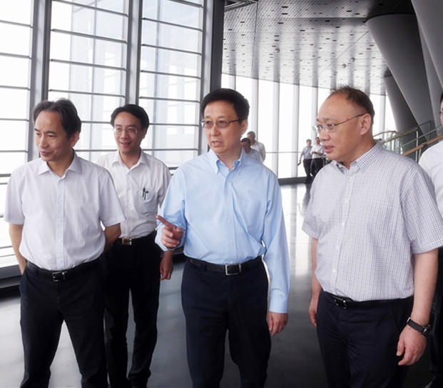 8月27日上午,中共中央政治局委员、上海市委书记韩正,市委副书记、市长杨雄等市领导,在集团党委书记、董事长徐征,副总裁房庆强等陪同下,调研已基本建成的上海中心大厦工程。市领导在听取了上海中心大厦工程绿色可持续技术运用情况汇报和察看现场后,肯定了集团在施工过程中采用的绿色施工创新理念和体现出的当今世界建造技术的领先水平。各区县党政负责同志和市有关委办局负责同志参加调研活动。