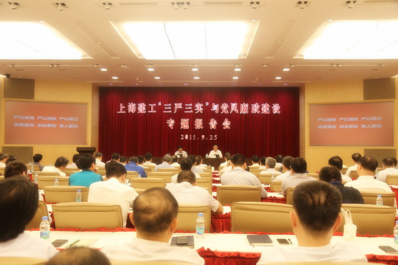9月25日,集团党委书记、董事长徐征,党委副书记、总裁杭迎伟等领导班子成员出席。集团党委副书记张立新主持会议,市纪委驻国资委党委纪检组副组长张为民作了关于“三严三实”与党风廉政建设的专题报告。报告从三个方面作了阐述:一是清醒认识“三严三实”与党风廉政建设的时代背景和重要意义;二是结合案例分析,强调国有企业落实从严治党、廉洁从业的基本要求和主要措施;三是国企领导干部要以“严以律己”为基础,带头落实“三严三实”的一系列具体规定。各单位领导班子成员、集团委派重大项目党建工作指导员及集团各部门负责同志等200余人参加了会议。