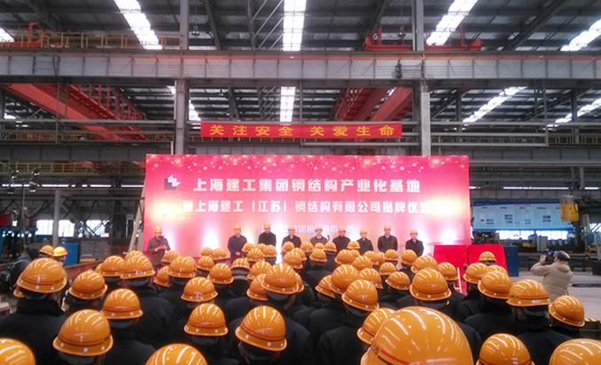 集团踏着上海加快科创中心建设的步伐,着力打造两级技术创新体系,并加快推进产业化基地建设,以此推动科技应用和创新成果的产业化。1月20日,集团党委书记、董事长徐征和党委副书记、总裁杭迎伟一起分别为“上海建工集团建筑构件产业化基地”、“上海建工集团工程装备产业化基地”、“上海建工集团钢结构产业化基地”和“上海建工(江苏)钢结构有限公司”揭牌,集团领导叶卫东、林锦胜、房庆强、卞家骏、秦宝华、蔡国强、龚剑、尹克定和集团各单位、各事业部主要领导、集团相关部门负责人等参加。