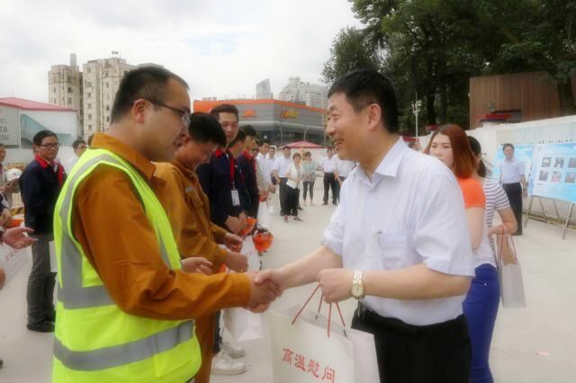 7月7日,市人大常委会副主任、市总工会主席洪浩等一行,来到集团承建的北横通道中山公园工作井项目工地现场,亲切慰问项目一线建设者。市总工会副主席侯继军,市交通委副主任刘军,集团党委副书记、工会主席张立新,集团副总裁、北横通道工程总指挥蔡国强等一同参与慰问。 洪浩仔细询问了一线建设者在高温天气下的工作、生活情况,并代表市总工会对广大建设者在高温期间坚守一线岗位,确保工程稳步推进所作出的努力表示感谢。他察看了宿舍、食堂等生活设施,并叮嘱一线建设者克服当前持续高温的不利影响,在安全做好工作的同时,劳逸结合,采取有效的防暑措施,顺利地度过高温季节,保质保量地完成工作。一线建设者纷纷表示,市总工会的慰问给他们带来了盛夏的缕缕清凉,要加倍努力工作,保障自身安全,保障项目推进,为北横通道建设贡献自己的力量。 |