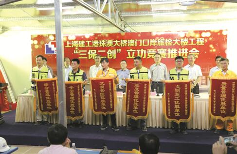 4月25日,集团在港珠澳大桥澳门口岸旅检大楼指挥部召开“三保二创”立功竞赛推进会暨联合工会、联合团委成立大会。集团党委副书记、总裁卞家骏,党委副书记、工会主席张立新,副总裁、工程联合党委书记、指挥部总指挥蔡国强,集团相关部门和各参建单位党政主要领导、分管领导、工会主席、项目经理、项目指导员以及建设者代表等330余人参加。会议由张立新主持。 卞家骏强调,要积极开展以“保工期、保安全、保质量、创文明工地、创文明营区”为主要内容的立功竞赛活动,努力把港珠澳旅检大楼项目打造成为经得起风雨和历史检验的精品工程。他要求,要大力弘扬集团“三大文化基因”,塑造建工品牌新形象;注重创新引领,落实各项责任,明确工作重点;依托重大工程立功竞赛活动建设,出经验、出人才。各参建单位要团结带领广大建设者深入开展“改革创新促转型、奋发有为谋新篇”主题教育活动,聚焦重点、落实责任,加强协同配合、狠抓推进落实,保质保量完成工程建设。 张立新提出,各参建单位要丰富工作载体,创新工作方法,激发建设者的劳动热情,关心维护好他们的生命安全和身心健康,在服务职工、服务青年上取得更多成效。 会上,蔡国强宣布竞赛获奖名单。一建集团、机施集团、安装集团、装饰集团、总承包部等单位分别交流发言并在竞赛目标承诺牌上签字。会上成立了上海建工港珠澳大桥澳门口岸旅检大楼工程项目联合工会、联合团委。