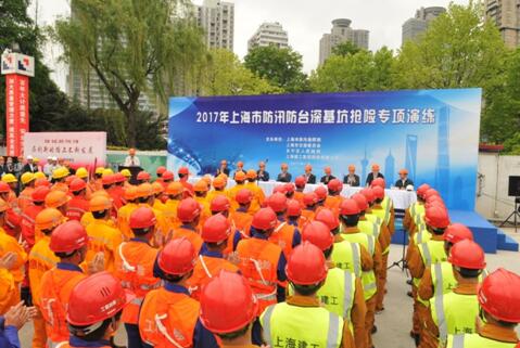 5月3日,由市防汛指挥部、市交通委、长宁区政府、集团联合主办的2017年上海市防汛防台深基坑应急抢险专项演练,在上海建工承建的北横通道中山公园工作井项目举行。副市长陈寅,市政府副秘书长黄融,市水务局局长白廷辉、市应急办主任熊新光、市住建委秘书长金晨、市交通委副主任蔡军,集团党委副书记、总裁卞家骏,副总裁叶卫东等出席。七建集团、机施集团、基础集团、建工医院等单位的防汛应急队伍共100余人参加演练。 演练主要包括机械设备应急响应、人员安全撤离、工地临房应急加固、深基坑加固、深基坑堵漏、深基坑排水等科目。此外,演练还采用了无人机视频直播的形式,多方位、多角度展示演练场景。除现场之外,市防汛指挥部各成员单位在市防汛指挥部指挥中心、各区在各自分会场收看了演练视频直播。演练中,集团各抢险队伍按照预定科目圆满完成各项演练任务。通过机械设备应急响应、人员安全撤离、活动房应急加固,进一步检验了在台风预警发布后的应急反应能力;通过深基坑加固、深基坑堵漏、深基坑排水,进一步强化了暴雨积水后的现场应急抢险能力。陈寅对此次演练给予充分肯定,并要求各部门、各单位以此次演练为契机,抓紧汛前宝贵时间,进一步落实责任、完善预案、强化措施,扎扎实实做好各项防汛准备工作,严正以待迎接今年汛期的考验,全力以赴确保本市安全度汛。