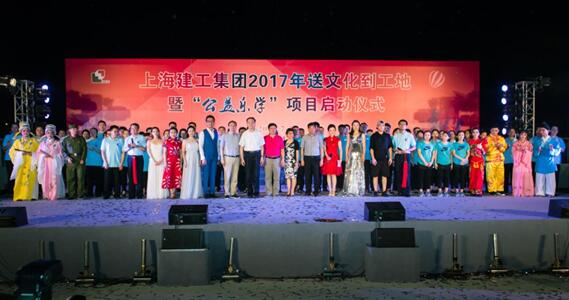 集团2017年送文化到工地暨“公益乐学”项目启动仪式7月28日晚在集团浦东国际机场卫星厅项目部举行。上海市总工会宣教部部长陈必华,市工人文化宫主任侯伟康,上海机场建设指挥部党组副书记、机关党委书记徐萍,集团党委副书记、工会主席张立新等出席。 张立新表示,集团工会以“送文化到工地”的形式,为一线建设者送上一台由职工自导自演的慰问演出,既是对劳动者、劳动美的致敬和礼赞,更是维护一线建设者精神文化权益、推进职工文化建设的具体举措。希望通过“公益乐学”等项目的启动,全面唱响“劳动最光荣”的时代主旋律,更好地服务企业发展,服务一线职工。 来自各基层单位的80多名职工带来方言说唱《城市建设排头兵》等9个精彩节目。集团各单位工会主席、浦东新区祝桥镇有关部门领导以及500余名建设者代表参加。演出结束后,还在工地现场放映了露天电影,得到一线建设者的欢迎与好评。