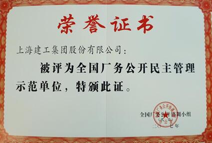 集团荣获全国厂务公开民主管理示范单位