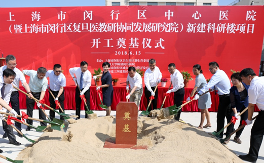 6月15日,四建集团闵行区中心医院新建科研楼暨闵行区复旦医教研协同发展研究院项目开工奠基仪式在施工现场举行。闵行区副区长杨德妹,集团副总裁蔡国强及四建集团主要负责人出席。蔡国强在致辞中表示,上海建工将延续之前医疗类项目的成功经验,发挥好总策划、总集成、总协调作用,为上海人民再建设出一座高星级标准的绿色医院建筑。该项目位于闵行区莘庄镇,总建筑面积4.2万平方米,地上10层、地下2层,也是闵行区卫计委首个BIM全过程应用试点项目。