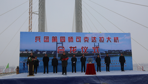 11月16日,新疆伊犁河上的第一大桥——可克达拉特大桥顺利合龙。集团党委副书记张立新,集团党办宣传处、基础集团主要负责人等出席合龙仪式。该桥由基础集团、新疆北新路桥集团联合施工。 张立新在致辞中表示,可克达拉特大桥是集团深入践行“三全”战略,助力新疆当地交通建设的一项代表工程。全体建设者克服桥梁规模庞大、施工工艺复杂、技术含量高、施工工期紧等困难,确保大桥顺利合龙,体现了上海建工的担当与使命。 大桥通车后,可大大缩短从乌鲁木齐往都拉塔口岸、察布查尔县、昭苏等方向驾车行驶的路程,形成跨越伊犁河的又一条通道,有效助力“一带一路”的建设,对加快可克达拉市城市建设步伐,促进当地旅游业、商贸流通业等发展具有重要意义。该桥是新疆首座预应力混凝土斜拉桥,也是目前新疆最大的单体斜拉桥。工程于2015年9月30日开工,预计明年通车。