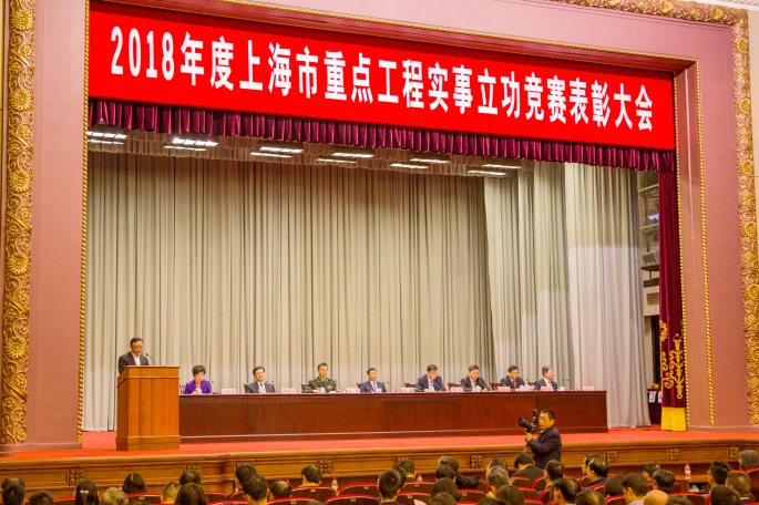 1月11日,2018年度上海市重点工程实事立功竞赛表彰大会在上海展览中心召开。市委书记李强,市委副书记、市长应勇,市人大常委会主任殷一璀,市政协主席董云虎,市委副书记尹弘等领导会见包括市政总院周军、机施集团李志宏、材料公司李志猛、总承包部王伟良、基础集团杨成龙等在内的60名全市立功竞赛先进集体和先进个人代表。集团党委副书记、总裁卞家骏,工会主席卞炯出席表彰大会。卞家骏在会上作了题为《传承竞赛精神,勇当建设先锋》的交流发言。 大会表彰的市重点工程实事立功竞赛先进集体和先进个人中,建工集团赛区市政总院、机施集团荣获“金杯公司”称号;材料公司第一构件厂、总承包部第四项目管理公司荣获“金杯团队”称号;七建集团顾村安置房F-4地块文明施工升级示范等7个项目荣获“特色项目”称号;二建集团等11家单位荣获“优秀公司”称号;一建集团上海体育场综合改造项目部等15个集体荣获“优秀团队”称号;基础集团杨成龙等8人荣获“建设功臣”称号;四建集团刘昊等30人荣获“优秀建设者”称号;集团荣获“先进赛区”称号。