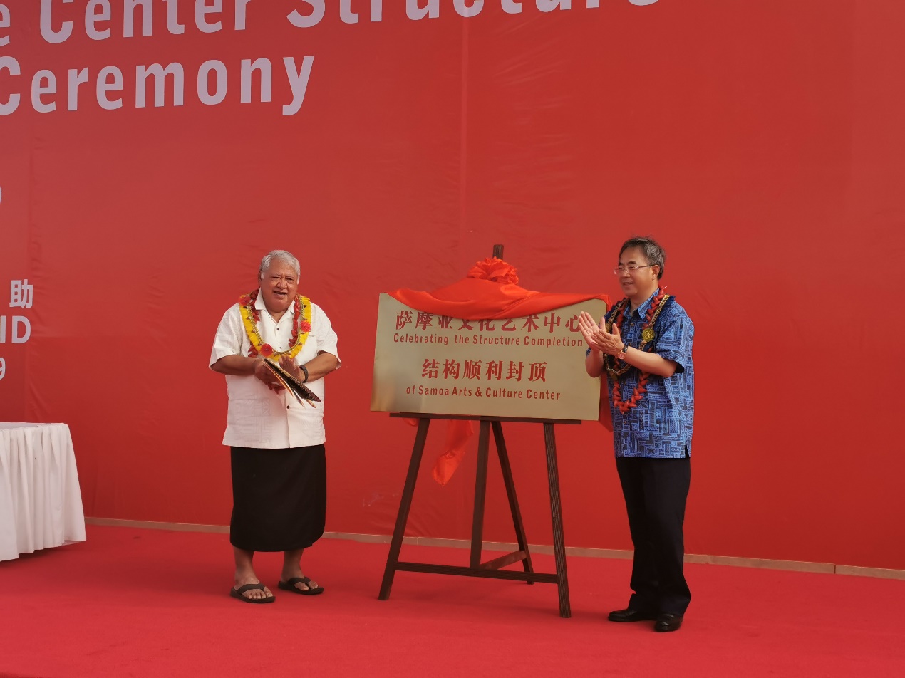 10月21日,由集团承建的惠州市援萨摩亚文化艺术中心项目举行结构封顶仪式,国务院副总理胡春华、萨摩亚总理图依拉埃帕共同为项目结构封顶揭牌。国务院、商务部、国合署、惠州市有关负责领导和萨方政府官员等出席仪式,集团副总裁薛永申以及国际业务部、海外部有关负责人等参加活动。 胡春华对项目建设情况予以充分肯定,向项目建设者表示亲切慰问,并对持续抓好项目建设工作做出重要指示。他指出,该项目建成后将成为萨摩亚最大的文化艺术中心,希望上海建工充分发挥大型建设集团的整体优势,展现企业综合实力,维护国家形象,确保在既定工期内高质量高标准完成建设任务,向萨摩亚人民和政府交付一座兼具中萨特色的文化演艺中心。 该项目用地面积9224平方米,建筑面积4375平方米,于2018年12月正式开工建设,计划于2020年5月竣工。建成后的文化艺术中心可具备剧场、图书馆和文化展览馆等功能,将成为萨摩亚最大的文化演艺中心和首都阿皮亚新的地标性建筑。 |
