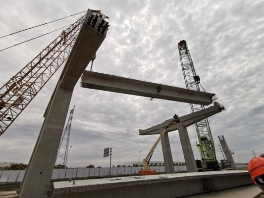 集团临港新片区各在建项目一手抓疫情防控,一手抓复工复产,多个项目完成重要节点。 两港大道(新四平公路~S2)快速化工程首件箱梁首吊成功 两港大道快速化工程首件箱梁近日起吊就位,预制箱梁首跨起吊拼装开始施工。两港大道项目主线高架及立交桥梁上部结构主要采用简支变连续预应力混凝土预制小箱梁。此件为两港项目全线首个箱梁吊装成功,也是项目复工复产后筹备施工的首个箱梁成功吊装,对保证整个线路的结构按期贯通起到积极作用。 临港新片区滴水湖G港桥贯通 历时7天的G桥钢结构吊装近日收官,G桥主体实现贯通。这也是滴水湖80米景观带CDFG景观桥项目复工后迎来的首个关键节点。G桥为平面呈直线形横断面G字形的网格结构,钢结构桥梁,跨度46.5米,总重400吨,分为3跨分段吊装,比原计划提前3天完成吊装。 S2公路-海港大道立交匝道工程完成“首件”吊装 近日,项目团队在短短一周时间内,利用UHPC新工艺拼装方式,先后完成首件立柱、首件盖梁、首件箱梁吊装。“首件”步骤的完成对整个工程的进展具有里程碑式意义。工程采用国内最先进的UHPC新型预制拼装技术,在原有预制拼装的基础上,又大大缩减了拼装时间。项目预计9月底完成结构贯通,将成为国际创新协同区建设发展的重要交通支撑。该工程为现有S2公路与海港大道相交节点,新建T3、T6两根独立匝道,总长4.4千米,主要内容涉及道路、桥梁、排水等工程。