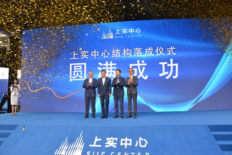 10月16日,上实中心大厦项目实现结构主塔楼封顶并举行封顶仪式,集团党委书记、董事长徐征,集团副总裁叶卫东等出席仪式。