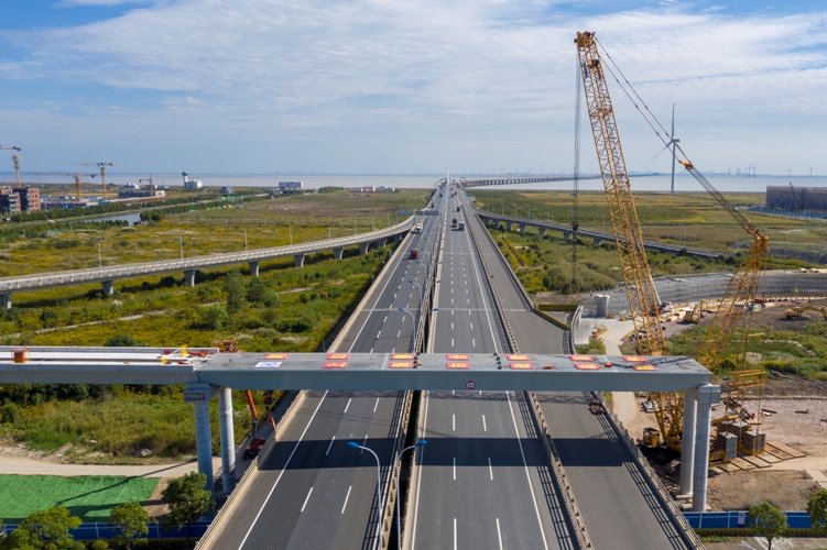 市政总院承接的S2公路-海港大道立交匝道新建工程近日完成首片叠合梁架设,即上跨东海大桥梁体安装作业。S2匝道继刷新临港片区拼装“新速度”后,又继续攀登临港片区市政工程施工作业“新难度”——作为东海大桥空域,首个上跨大桥施工的项目。 此次吊装叠合梁跨度55米,宽度9米,梁高2.68米,采用双主梁-钢箱梁形式,梁重229.2吨。 为了在交警部门要求的短短15分钟之内完成55米叠合梁的架设,项目部从经济性、可行性出发,通盘考虑,采用分段预制运输叠合梁,两天两次分节吊装完成上跨作业的方式,既满足短封闭的要求,又确保方便施工,节省投资。项目建成后将加强临港新城主城区对外交通联系,成为今后顶尖科学家社区、临港协同创新区进出的主要通道。 |