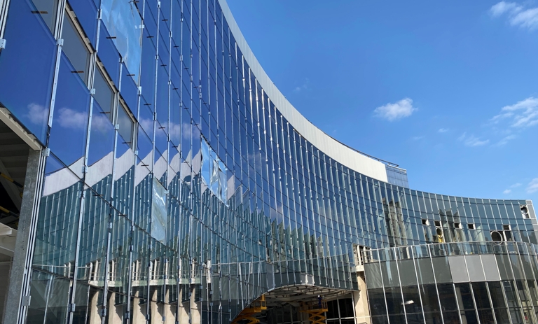 四建集团承建的上海少儿图书馆新馆项目是保障上海未成年人阅读权益,对标国际文化大都市发展战略的重要少儿文化设施。项目自2018年11月进场,目前已实现幕墙封闭,揭开了神秘面纱。在施工过程中获得多个市级荣誉并收到业主好评,为四建集团文化品牌添彩。 该项目南侧是苏州河内湖——“彩虹湖”,周边还有在建地铁15号线、在建北横通道,北侧紧邻居民区。项目团队通过调整基坑开挖施工顺序和节奏、深化技术,确保位移不超过1毫米,避免出现管网拉裂及明显的沉降问题。 依照设计造型为“桥”的理念,项目南、北立面为圆弧形,加之底部的拱桥形设计,这种两个曲面相交的设计即便在形态各异的文化类工程中也很少见。 玻璃幕墙采用的并非平面玻璃,而是折线型玻璃幕墙拟合成圆弧,近两千块玻璃各不相同,出厂前每一块玻璃就设定好了“身份编号”,以便于放置到固定的位置使之与结构完美贴合。而南、北立面玻璃幕墙横向有多条圆弧装饰线条,为双曲面线条,通过三维建模,优化横向装饰线条可加工性,确定连接位置,并使用铝板焊接工艺实现双曲面线条效果。线条初步安装到位后,用红外线仪器对线条的直线度进行校准,最终直线度误差不超过5mm,高于规范要求。 项目内部如立体阅读讨论区、演播室、主题教育馆等多个场馆采用圆形砌筑,项目部采用“皮数杆”方法控制,逐一测量是否吻合实际效果。从方案编制、砌块排布、过程质量管控,到生产组织的一套安排流程都在团队的全程参与和紧密跟踪下。 当前,项目还在紧锣密鼓地组织施工生产,预计明年迎来竣工开馆,届时这座为青少年搭建的“知识之桥”将以崭新的面貌,迎接一批批“小读者”,成为他们成长路上的精神家园。 |