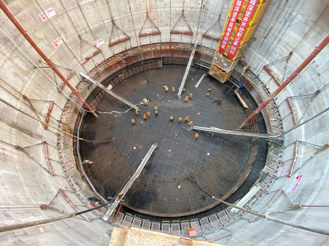 近日,基础集团承建的苏州河深层排水调蓄管道系统工程“云岭西竖井”完成大底板浇筑,标志着国内软土地区最深基坑新纪录——58.65米诞生,最深基坑纪录的更新对这座城市“超级调蓄管廊”系统建设具有重要的里程碑意义。 项目部研究出特深地墙接头防渗漏技术,确保超深地墙接头处止水性能。深隧特深竖井开挖深度达58.65米,开挖及底板浇筑过程中遇到上海地区第二、第三承压水层的影响,考虑到上海地区对第三承压含水层减压降水实属首次,项目部认真研究相关资料,总结分析降水诱发的沉降规律,形成超深减压井的施工管理指南,为工程质量控制提供重要技术支撑。 项目部设计出一套整体下放的大直径圆形金属模板系统——MJY型竖井整体移动金属模板系统。该系统能实现每3米一层侧墙一次性浇筑。项目部于第三节内衬结构开始该模板系统,截至底板混凝土浇筑完成已应用该系统完成9节内衬墙的结构施工。MJY整体移动金属模板系统在深隧项目上的使用,大量减少传统模板及脚手架耗用量,自动化程度高,用工少,施工工效和质量显著提升,且钢模还能回收再利用。 该工程竖井为圆形基坑,受力特殊,底板钢筋体量大,钢筋层数较多,排列密集,给现场施工带来很大挑战。项目部进一步优化施工方案,采用分层施工,分层验收进行精细化施工,对施工方案进行研究、预演,大量运用BIM技术及数值模拟技术,并对混凝土配合比、钢筋临时支架结构、钢筋加工及施工流程、混凝土超深垂直运输等进行优化。 |