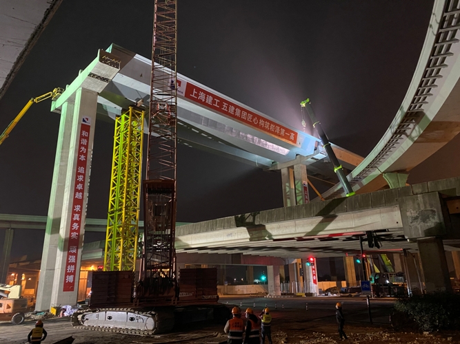 五建集团承建的崧泽高架西延伸段3标项目日前完成上跨G15沈海高速的全线最关键吊装施工。 作为上海市吊装空间最狭小、高架吊装高度最高的项目之一,此次吊装施工的组织管理非常困难,在整个上海区域都非常少见,对技术和管理提出很高的要求。为在仅有30分钟的高速路封闭时段中,一次性实现G15高速路正上方的钢箱梁吊装,项目团队采用“双机抬吊”和“空中接力”相结合的方法,在空中完成跨径49米、重130吨主体钢箱梁的提升、转体、再提升、再转体等一系列高难度作业过程,最终完成此次上海施工领域的又一项“极限挑战”。 主体钢箱梁启动吊装时,以一台汽车吊机把钢箱梁抬升至高空,并先后在近16米和37.5米的位置,逐步完成两次90度的“空中转体”,在把钢箱梁架设至精准测算的预点位后,再以两台汽车吊机在吊装点开展“空中换手”。完成吊装点的重新布置后,令巨型构件得以精准到位,以搭积木式的预制施工技术,快速完成现场拼装,从而减少噪音、扬尘及对G15大流量交通的影响。 据悉,崧泽高架西延伸工程全长18公里,西起漕盈路,东至崧泽高架G15立交以东收费站。它是在现有的四层立体交通上方,架起一条新的高架梁,最终实现五层立体交通网络。建成后将成为连接青东五镇区域、青浦新城与上海市中心之间的快速通道,是上海市东向骨干路网的补充和完善,是长三角一体化交通设施的重要组成部分,将把江浙两省、长三角一体化发展示范区前往国展中心及上海市中心的时间从原有的近一个小时缩短至15分钟左右。 |