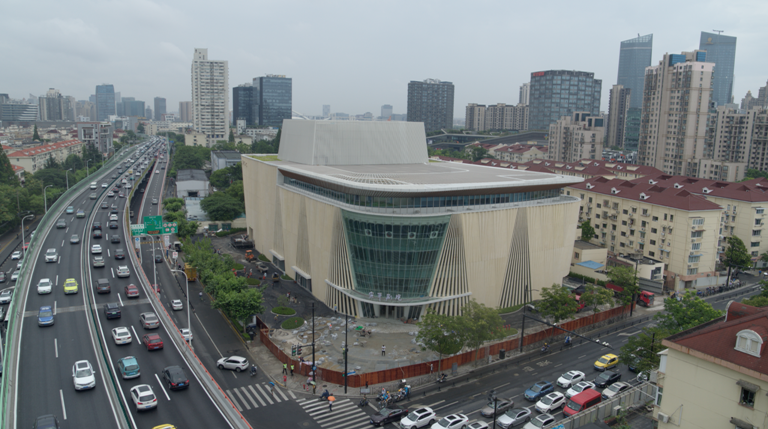 今年恰逢中国共产党建党100周年和上海戏曲艺术中心成立10周年,阔别上海观众五年的宛平剧院升级回归,于近期进行了首场演出。 项目设计造型取意海派玉雕,外部体量简洁凝厚,立面宛如徐徐展开的中国折扇,内部空间灵活多彩,色彩素雅,创造出立体化的中国园林式空间体验。剧院总建筑面积2.9万平方米,在占地面积不增加的基础上,使用面积比初建于1988年的老剧场扩大3倍。地上5层、地下3层的不同观演区错落叠放,包括996座的大剧场、262座的小剧场,还有“戏?聚空间”多功能演艺厅、影音体验中心、150平方米专业排练厅等文化空间,将成为上海地域文化和中国戏曲繁荣发展的标志性建筑。 该项目是沪上第一个全钢结构剧场。采用钢框架+屋盖桁架结构体系。一般的剧场用钢结构做顶,柱子为混凝土,但在宛平剧院的场地更加狭小,项目东侧地墙距红线最短距离约2.6米,基坑几乎撑满用地范围。南侧红线外为东安五村小区,东侧红线外场地为船舶工艺研究所,基坑北侧红线外为中山南二路及内环高架。周边道路下市政管线多。钢结构搭建不同于混凝土,能最大程度避免对周边居民的扬尘影响。 |
