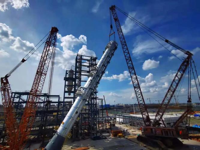 近日,安装集团施工总承包的广西华谊能源化工公司合成气综合利用醋酸装置中交验收完成。 华谊钦州化工新材料一体化基地项目的建设,对加快延伸钦州石化产业链、形成北部湾沿海石化产业集群、打造国家级钦州石化产业基地具有重要意义,也成为广西与上海,“海上丝绸之路经济带”的两个战略节点紧跟时代步伐,发挥各自优势深化合作,联动打造的桂沪合作新典范。醋酸二期装置的顺利中交,是整个基地二期建设中第一个实现交工的项目。 据悉,该项目施工难点多,包括主装置内装高峰阶段各专业交叉作业多、施工安全隐患多和成品保护难度大;大型设备基础预埋地脚螺栓施工精度高;基坑水池开挖深度深;大型设备吊装任务重、技术难度大;特材管道的焊接与安装质量要求高;施工周期内雨季时间长、环境潮湿、对焊接质量影响大;醋酸装置管道材质多样,有锆材、哈氏B3、哈氏C276等十几种材质;醋酸二期装置施工时,旁边醋酸一期装置已经投产开车,生产与施工同时进行。项目部15名管理人员科学组织,高质量地完成了一系列施工任务,并连续多次获得综合考核、HSE考核第一名的好成绩,在钦州打响了上海建工安装集团的品牌。