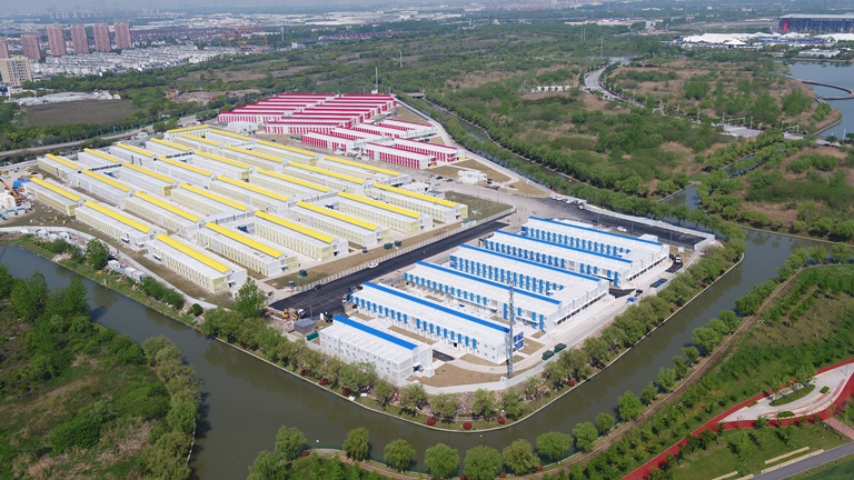 近日,在嘉定区安亭镇,由集团承建的嘉定临时隔离用房项目全部建成交付,提供近4000张床位,首批密接隔离人员已于4月13日入住,截至4月19日,入住人数达1000人。该项目由集团旗下总承包部、一建集团、二建集团、四建集团、五建集团、安装集团、装饰集团、园林集团、建材科技、华建新晃等9家单位共同参建,总占地面积约15万平方米,总建筑面积约11.2万平方米,施工最高峰现场近4000人同时作业。 任务重、时间紧,在最后一周的冲刺施工中,4000多名建设者完成了近2000个集装箱组拼吊装,3000套集成卫浴、近10000个标识标牌、12000多套家电设备和近百个各类路灯安装,约50000平方米草皮铺设,20000余米管道埋设和超5000延米围墙的搭设,在争分夺秒中创造出了非常时刻的“非常速度”,为进一步提升密接隔离能力、为上海打赢疫情防控阻击战贡献力量。
