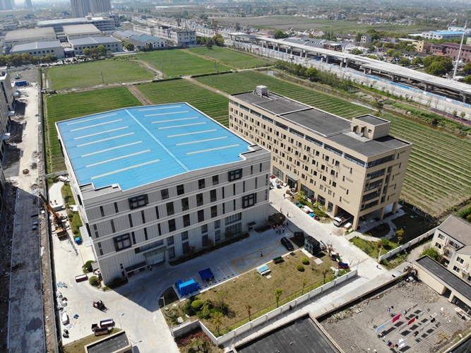 经过96个小时的日夜奋战,4月14日,奉贤区第二座方舱医院(02基地)由五建集团建成并交付。该方舱医院总建筑面积17005平方米,拥有2022张床位。五建集团发挥专业优势,火速集结建设人员,跨省调运购买物资,建设高峰期有580名工人同时开展建设,不计代价、日夜赶工、如期交付,为尽快实现疫情社会面清零提供了保障。 该项目位于奉贤区金海路以西、汇丰北路以北产业园区内,总建筑面积17005平方米,对已有建筑1#隔离楼、2#隔离楼进行改造。病房区由高1.1米防火板分隔组成每2.5米x3米包含2张病床的隔离区,共提供约2022张床位,每个楼层内还包括人员生活配套用房、医护站、消毒间、床上用品等。在室外厂区内组建医务人员办公区、休息区、更衣区、污物区、物资储藏区等紧急板房,最后搭设环形临时围挡分隔污染区确保人员安全。 |