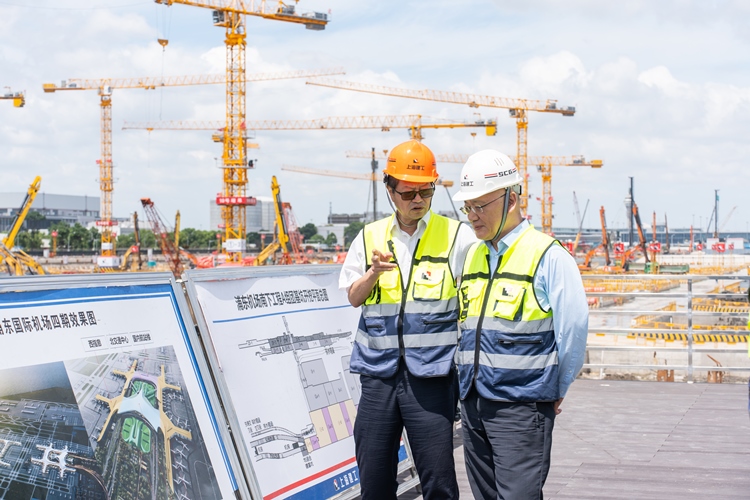 10月19日,集团董事长徐征调研浦东机场南区地下交通枢纽及其配套工程,实地查看建设情况,听取工程进度、安全生产、文明施工等情况汇报。