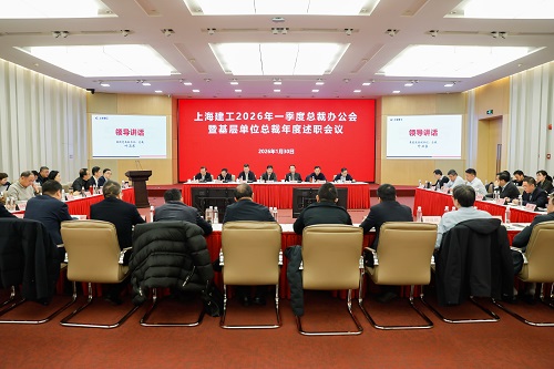 1月30日下午,上海建工集团召开2026年一季度总裁办公会暨基层单位总裁年度述职会议,围绕集团“十五五”规划确立的目标任务,安排部署2026年一季度重点工作,确保“十五五”开好局、 起好步。集团党委副书记、总裁叶卫东主持会议并讲话。 上海建工集团相关领导班子成员、总部各部门负责人以及各基层单位总裁(总经理)出席会议。