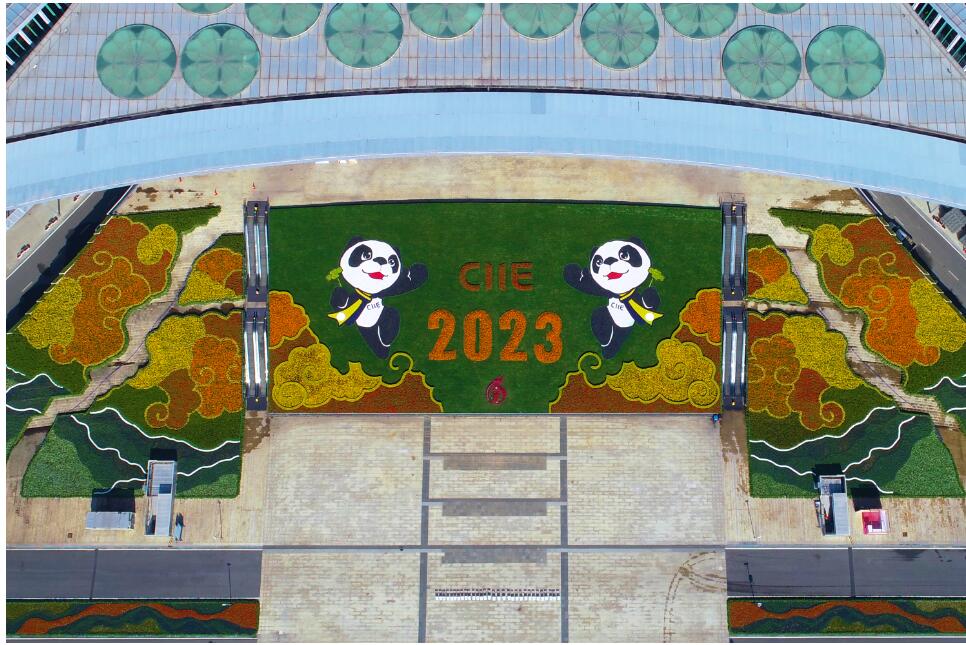 全球热盼的“进博时间”即将开启,“四叶草”盛装就绪,准备迎接八方来宾。 目前,由上海建工园林集团旗下绿建公司承建的第六届中国国际进口博览会场馆景观装饰工作全面定妆。第六届进博会延续前几届风格,以“海纳百川、共享未来”为主题,主要在场馆的南广场以及西厅展开。 南广场的景观设计紧紧围绕“云山—梯田花海—河流—现代城市花园”四个空间脉络来展开,以摆花为装饰手段,使用角堇、百日草、孔雀草、一串红、向日葵以及水生植物共计约68万盆,由南向北覆盖10500平方米面积的南广场区域,360度全景展示中华大地锦绣缤纷的自然之美。 本届进博会广场景观在保持往年表现手法的基础上,通过增加红色花卉的用花量,如红色百日草等,更好地营造喜庆热烈的广场氛围。在大草坪上,新设数字“6”LOGO,由百日草配合亚克力材料组合打造而成。 这是一个进博会6周年的主题元素设计,整体由一个“内蕴乾坤、外向全球”的“6”和“充满希望、向世界打招呼”的熊猫“进宝”组成,总体呈现出鲜明的识别度。“6”的外形轮廓,如两条丝带,圆融、顺畅地联接在一起,寓意一带一路的发展与国际国内双循环的相互促进、相辅相成。 在整个广场空间中,“CIIE”和“2023”字样、四层梯田花海、迷宫花园等多个主题花园采用橙色孔雀草、黄色孔雀草、红色百日草、角堇等各色花卉植物来演绎祥云、渐变云山的纹样效果。 南广场入口处,高达8米,直径1米的8根景观柱,镂空雕刻30种语言的“你好”。这是它们第四年亮相南广场,通过专业的管养维护,今年,8根景观柱将再次换新点亮,以通透灵动的光影效果,焕然一新的色彩再次欢迎与会的八方来客。 西厅作为进博会景观的重要组成部分,景观保持喜庆、热烈和大气的设计理念,门前采用斜坡式平台,1000余平方米的红色百日草,更好地营造庄重、热烈的迎宾气氛。绽放的三角梅花柱,进一步拉升景观高度,提高景观层次感。 在第六届进博会景观装饰中,灯光的作用依旧不可小视。洗地灯、林带探照灯、水下灯照射、星光灯、灯带、线条灯,在相应的景观内闪烁,让层层叠叠布置的花卉更显明艳动人。