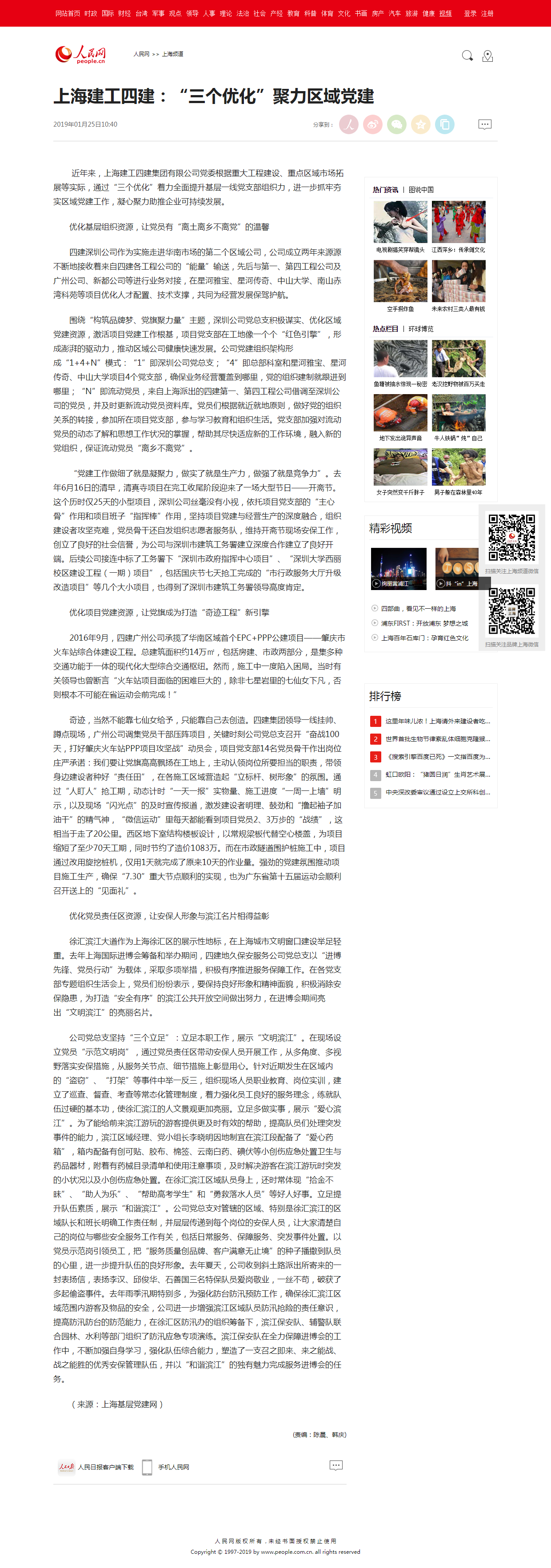 2019年01月25日 优化基层组织资源,让党员有“离土离乡不离党”的温馨 四建深圳公司作为实施走进华南市场的第二个区域公司,公司成立两年来源源不断地接收着来自四建各工程公司的“能量”输送,先后与第一、第四工程公司及广州公司、新都公司等进行业务对接,在星河雅宝、星河传奇、中山大学、南山赤湾科苑等项目优化人才配置、技术支撑,共同为经营发展保驾护航。 围绕“构筑品牌梦、党旗聚力量”主题,深圳公司党总支积极谋实、优化区域党建资源,激活项目党建工作根基,项目党支部在工地像一个个“红色引擎”,形成澎湃的驱动力,推动区域公司健康快速发展。公司党建组织架构形成“1+4+N”模式:“1”即深圳公司党总支;“4”即总部科室和星河雅宝、星河传奇、中山大学项目4个党支部,确保业务经营覆盖到哪里,党的组织建制就跟进到哪里;“N”即流动党员,来自上海派出的四建第一、第四工程公司借调至深圳公司的党员,并及时更新流动党员资料库。党员们根据就近就地原则,做好党的组织关系的转接,参加所在项目党支部,参与学习教育和组织生活。党支部加强对流动党员的动态了解和思想工作状况的掌握,帮助其尽快适应新的工作环境,融入新的党组织,保证流动党员“离乡不离党”。 “党建工作做细了就是凝聚力,做实了就是生产力,做强了就是竞争力”。去年6月16日的清早,清真寺项目在完工收尾阶段迎来了一场大型节日——开斋节。这个历时仅25天的小型项目,深圳公司丝毫没有小视,依托项目党支部的“主心骨”作用和项目班子“指挥棒”作用,坚持项目党建与经营生产的深度融合,组织建设者攻坚克难,党员骨干还自发组织志愿者服务队,维持开斋节现场安保工作,创立了良好的社会信誉,为公司与深圳市建筑工务署建立深度合作建立了良好开端。后续公司接连中标了工务署下“深圳市政府指挥中心项目”、“深圳大学西丽校区建设工程(一期)项目”,包括国庆节七天抢工完成的“市行政服务大厅升级改造项目”等几个大小项目,也得到了深圳市建筑工务署领导高度肯定。 优化项目党建资源,让党旗成为打造“奇迹工程”新引擎 2016年9月,四建广州公司承揽了华南区域首个EPC+PPP公建项目——肇庆市火车站综合体建设工程。总建筑面积约14万㎡,包括房建、市政两部分,是集多种交通功能于一体的现代化大型综合交通枢纽。然而,施工中一度陷入困局。当时有关领导也曾断言“火车站项目面临的困难巨大的,除非七星岩里的七仙女下凡,否则根本不可能在省运动会前完成!” 奇迹,当然不能靠七仙女给予,只能靠自己去创造。四建集团领导一线挂帅、蹲点现场,广州公司调集党员干部压阵项目,关键时刻公司党总支召开“奋战100天,打好肇庆火车站PPP项目攻坚战”动员会,项目党支部14名党员骨干作出岗位庄严承诺:我们要让党旗高高飘扬在工地上,主动认领岗位所要担当的职责,带领身边建设者种好“责任田”,在各施工区域营造起“立标杆、树形象”的氛围。通过“人盯人”抢工期,动态计时“一天一报”实物量、施工进度“一周一上墙”明示,以及现场“闪光点”的及时宣传报道,激发建设者明理、鼓劲和“撸起袖子加油干”的精气神,“微信运动”里每天都能看到项目党员2、3万步的“战绩”,这相当于走了20公里。西区地下室结构楼板设计,以常规梁板代替空心楼盖,为项目缩短了至少70天工期,同时节约了造价1083万。而在市政隧道围护桩施工中,项目通过改用旋挖桩机,仅用1天就完成了原来10天的作业量。强劲的党建氛围推动项目施工生产,确保“7.30”重大节点顺利的实现,也为广东省第十五届运动会顺利召开送上的“见面礼”。 优化党员责任区资源,让安保人形象与滨江名片相得益彰 徐汇滨江大道作为上海徐汇区的展示性地标,在上海城市文明窗口建设举足轻重。去年上海国际进博会筹备和举办期间,四建地久保安服务公司党总支以“进博先锋、党员行动”为载体,采取多项举措,积极有序推进服务保障工作。在各党支部专题组织生活会上,党员们纷纷表示,要保持良好形象和精神面貌,积极消除安保隐患,为打造“安全有序”的滨江公共开放空间做出努力,在进博会期间亮出“文明滨江”的亮丽名片。 公司党总支坚持“三个立足”:立足本职工作,展示“文明滨江”。在现场设立党员“示范文明岗”,通过党员责任区带动安保人员开展工作,从多角度、多视野落实安保措施,从服务关节点、细节措施上彰显用心。针对近期发生在区域内的“盗窃”、“打架”等事件中举一反三,组织现场人员职业教育、岗位实训,建立了巡查、督查、考查等常态化管理制度,着力强化员工良好的服务理念,练就队伍过硬的基本功,使徐汇滨江的人文景观更加亮丽。立足多做实事,展示“爱心滨江”。为了能给前来滨江游玩的游客提供更及时有效的帮助,提高队员们处理突发事件的能力,滨江区域经理、党小组长李晓明因地制宜在滨江段配备了“爱心药箱”,箱内配备有创可贴、胶布、棉签、云南白药、碘伏等小创伤应急处置卫生与药品器材,附着有药械目录清单和使用注意事项,及时解决游客在滨江游玩时突发的小状况以及小创伤应急处置。在徐汇滨江区域队员身上,还时常体现“拾金不昧”、“助人为乐”、“帮助高考学生”和“勇救落水人员