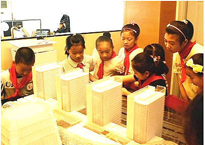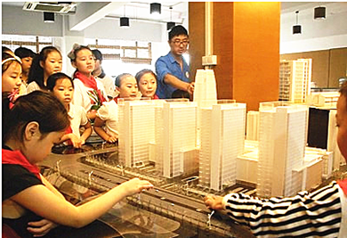 8月17日,2014年上海青少年社会体验夏令营正式拉开帷幕。当天上午,上海建工设计院大楼迎来了一群特别的嘉宾——20位怀揣着对建筑美好憧憬的“红领巾”,他们将在这里展开一场奇妙的建筑之旅,体验一天小小设计师的生活。 一进门,他们就对楼内各种新奇的事物充满了好奇,时而看着忙碌的青年设计师,时而又围住了建筑设计模型。“这是用什么材料做的?”、“这个以后要做成什么?”、“一张纸到底能承载起多大的重量?”带着这些问题,孩子们开始了自己的探索。 有的将纸揉成一根细条,有的则细心地将纸折成正方形、三角形等形状。在动手操作的过程中,“红领巾”们体验到了结构对建筑的重要性,更对“建筑”二字有了更深入的理解和认识。上海建工青年志愿者还从“什么是建筑”入手,让小朋友们了领略了世界各地的标志性建筑。 |