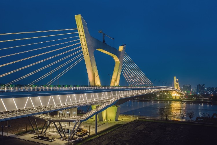 近日,“2021亚洲照明设计奖”成绩出炉,市政总院道桥院设计的宁波中兴大桥及接线(江南路-青云路)工程荣获室外类“特别之光”奖。这是道桥院在开拓景观照明市场后首次获得洲际照明类大奖。 亚洲照明设计奖由联合国国际光年委员会支持设立、亚洲照明设计师协会(AALD)主办,是亚洲照明设计领域最具权威及影响力的奖项之一。 宁波中兴大桥是世界上最大跨度的矮塔斜拉桥。在夜景照明上,桥梁主体采用投光的形式体现主桥大气简洁的造型美,平日模式以白光为主,展现纯净的白色;周末及节假日模式下LED全彩投光灯进行缓慢地色彩变化。特殊节假日开启主塔窗口处摇头灯,进行光束图案变化,营造节日氛围。桥上部分利用灯光展现拉索柔性之美,同时结合“甬”字结构的刚毅之光,桥侧的灯光起到串联作用,使桥在夜景中如长龙如飘带腾空横跨河川之上。桥下部分利用科技感十足的线条灯,利用材质的反射营造出无界之感,带来新的美感与科技体验。总体灯光结合不同场景模式演绎不同的光色,打造宁波夜景新地标。