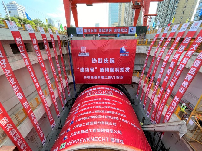 近日,集团承建的北横通道新建工程Ⅶ标北横东段进入盾构掘进阶段。 北横通道西起北虹路,东至内江路,全长约19.1公里,是中心城区北部东西向小客车专用通道,是“三横北线”的扩容和补充。北横通道西段已于今年6月18日正式通车。北横通道东段工程自文安路接地点至周家嘴路内江路,约8.2公里。 作为北横通道东段首条掘进的盾构区间,“建功号”盾构机自福建北路工作井始发后,将一路向东掘进,至梧州路井接收,长1538米。在梧州路工作井过站后,继续掘进至安国路工作井接收,长1288米。负责掘进的“建功号”泥水平衡盾构机,是上海目前最大的盾构机之一,总长125米、重3500吨,盾体长14米,刀盘开挖直径15.56米,最大推进速度50毫米/分钟。