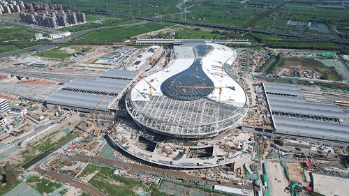 8月6日,上海建工集团党委副书记、总裁叶卫东前往新建沪苏湖铁路站房VI标(上海松江站)项目开展调研,集团副总裁陆峰参加调研。 当前,上海松江站项目已经完成了站房主体结构施工和站台雨棚的建设,正在进行站房室内装修、幕墙、机电安装等作业。